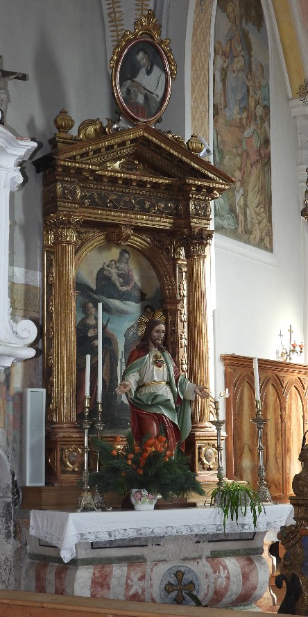 L'altare raffigurante le Sante Caterina e Barbara con la statua del "Sacro Cuore di Gesù".